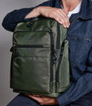 Grab handle.Ergonomic padded adjustable breathable shoulder straps.Main zip compartment.Ventilated back panel with discrete zip pocket.Front organiser pocket.Side zip pockets.Strap on the back to allow the backpack to be slipped into the trolley handles for easy transport.Tear out label.Capacity 20 litres.